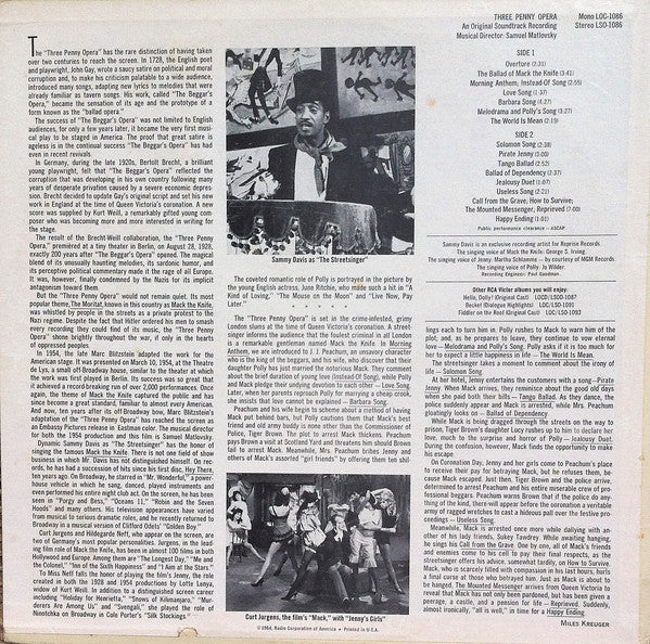 Bertolt Brecht / Kurt Weill / Sammy Davis Jr. - Three Penny Opera (An Original Soundtrack Recording) (LP, Album, Mono) (VG / VG)