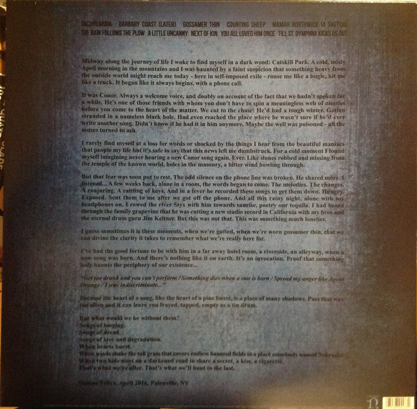 Includes download code and lyric sheet. Sticker on front cover says: "Conor Oberst's first solo recordings in nearly two decades. Made in Omaha in the dead of winter, 2016. Includes MP3 Download of the complete album. 7559-79447-3"
