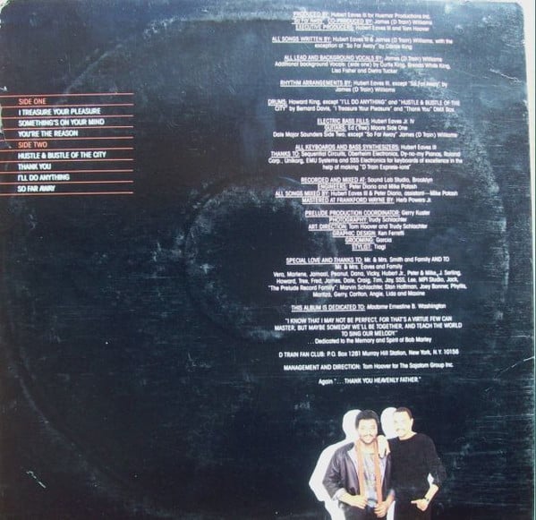 Published by Trumar Music/Huemar Music/Diesel Music (BMI) Produced for Huemar Productions Inc. Recorded and mixed at: Sound Lab Studio, Brooklyn Mastered at Frankford Wayne A product of Prelude Records ℗ & © 1984 Prelude Records Manufactured and distributed by Prelude Records Artist as D Train on cover and spine, "D" Train on labels.