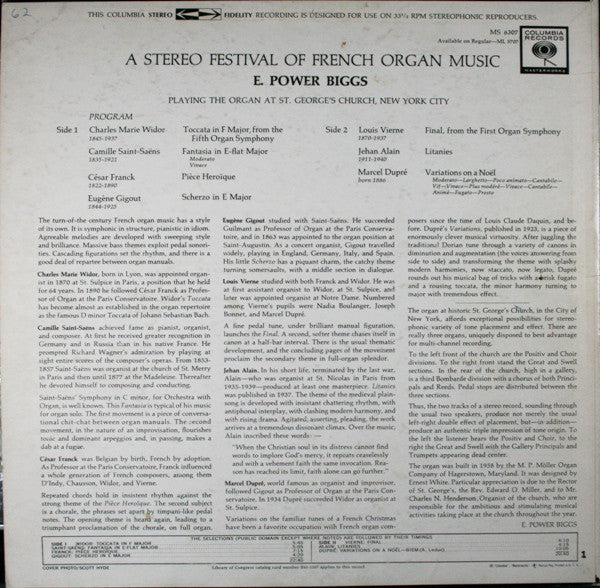 E. Power Biggs - A Festival Of French Organ Music (LP, Album) (NM or M- / VG+)