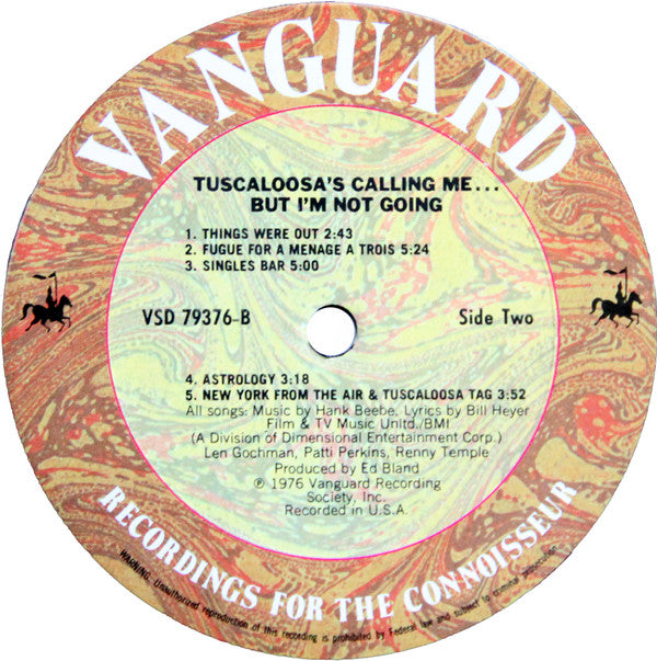Hank Beebe Lyrics By Bill Heyer Featuring Len Gochman, Patti Perkins, Renny Temple - Tuscaloosa's Calling Me (...But I'm Not Going!) (LP, Album) (VG+ / VG+)
