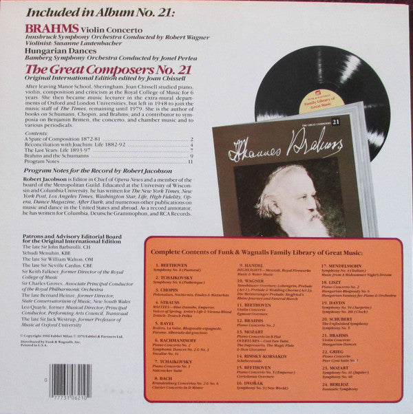 Part 21 of a 24 part series: (Album 21). Includes 12-page biography booklet of the composer/artist. "Printed in USA" on sleeve back and "Made in U.S.A." printed on media labels.