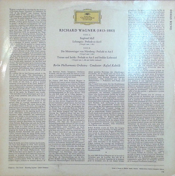 Richard Wagner - Berliner Philharmoniker, Rafael Kubelik - Preludes: Lohengrin / Meistersinger / Tristan Und Isolde / Siegfried-Idyll / Liebestod (LP) (NM or M- / VG+)
