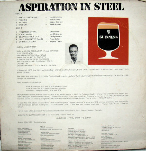 The Guinness City Symphony Steel Orchestra - Aspirations In Steel (LP, Album) (VG+ / VG)