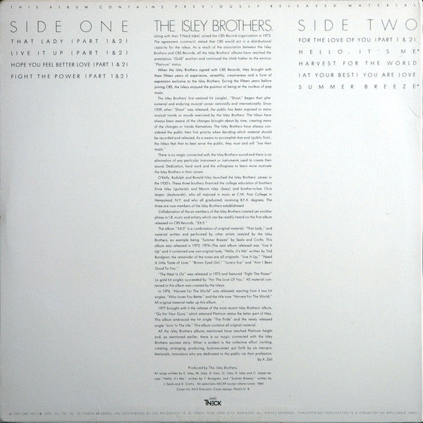 [l311166 pressing. © 1977 CBS Inc. ℗ 1973, '74, '75, '76, '77 T-Neck Records, Inc. Distributed by CBS Records Issued with lyric inner sleeve